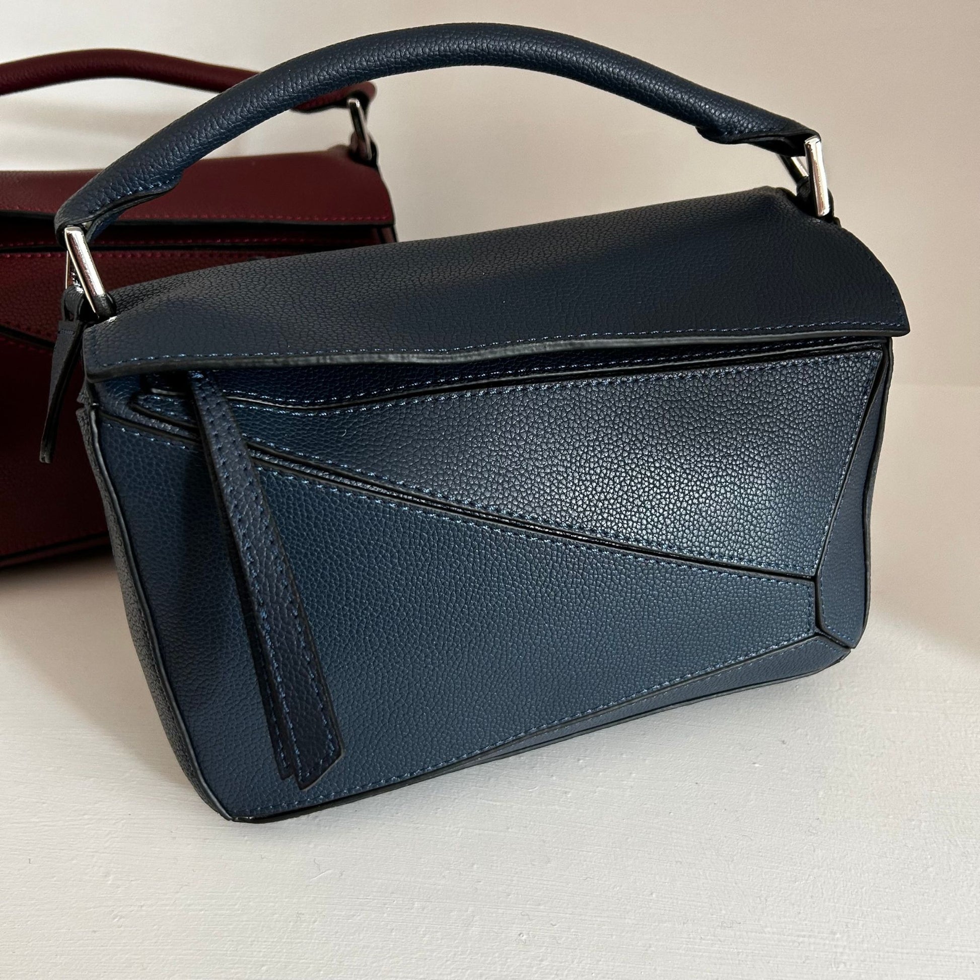 Leather Grab Handle Geometric Bags