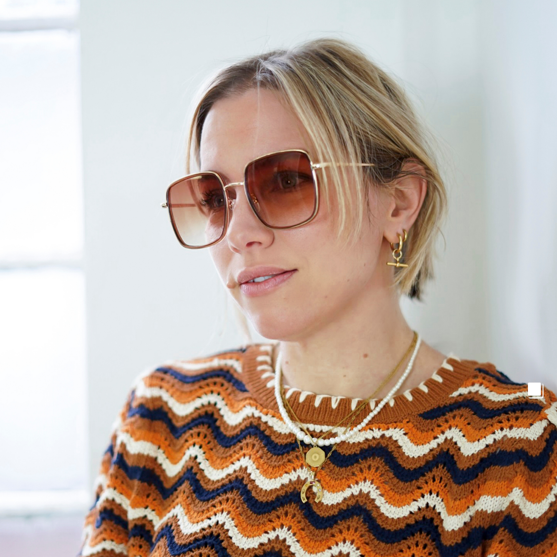 And offering 70's vibes, these hand-finished shades feature metal frames, polycarbonate lenses, and 100% UVA/UVB protection.