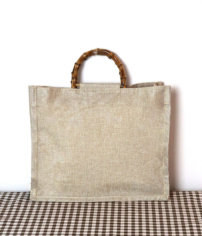 Bamboo Handle Hessian Shopper