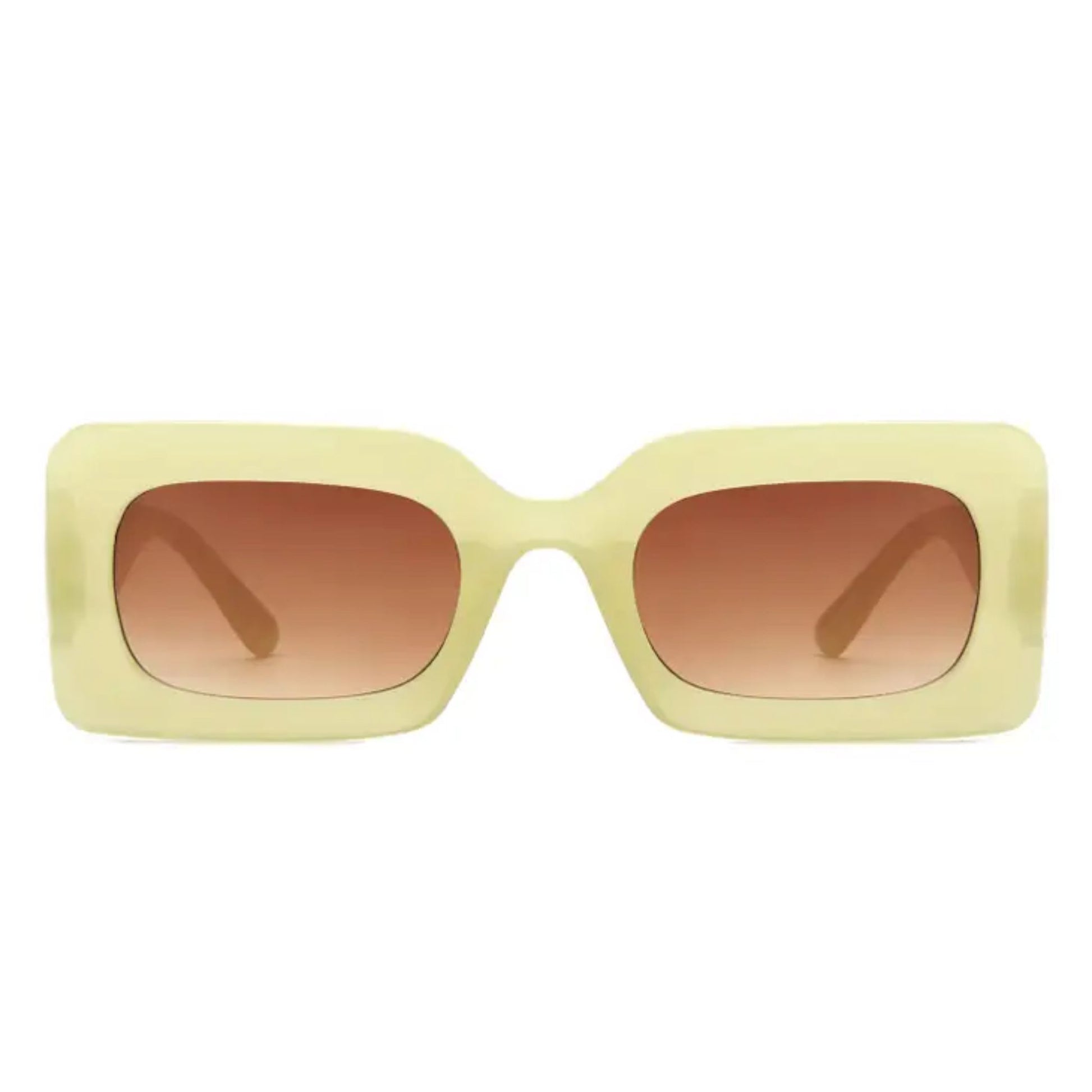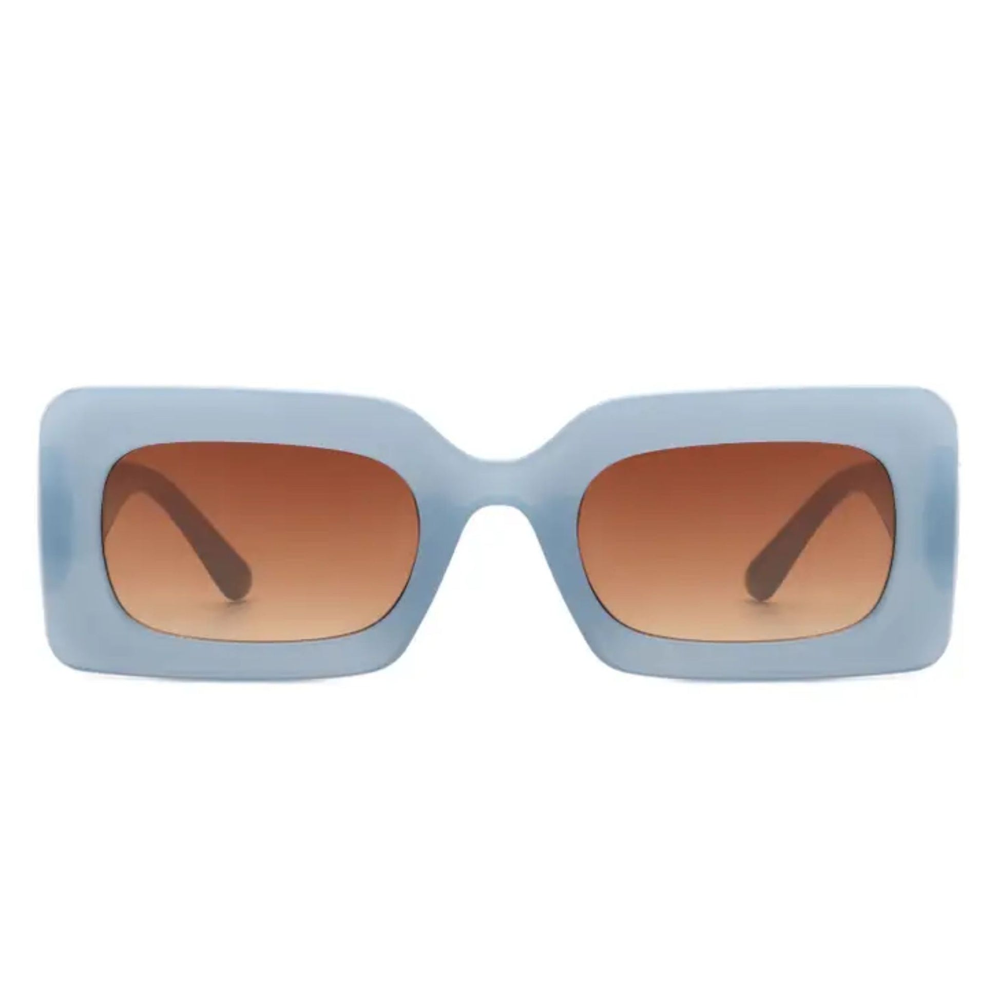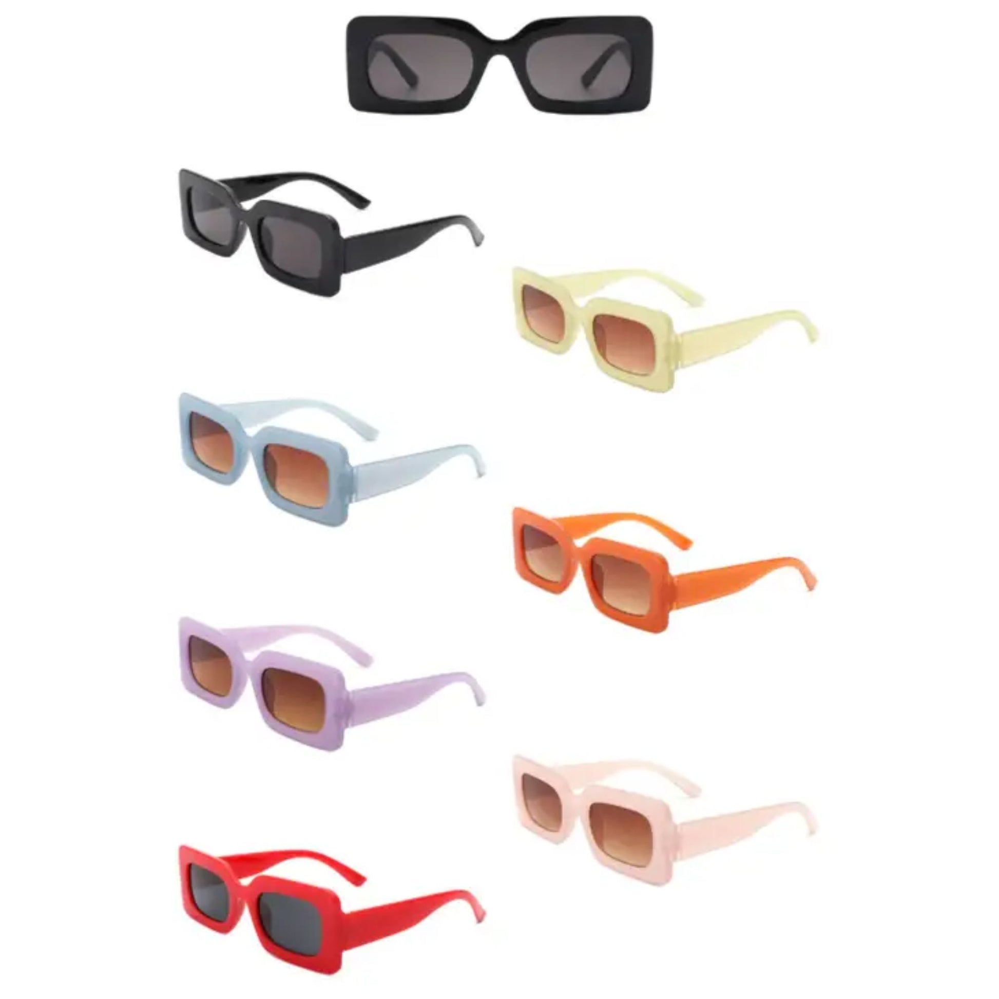 These Bright Rectangular Sunglasses are very on trend! Add a pop of colour or go for Spring fresh pastels. Available in black, soft blue, pistachio, orange , Lilac, pink or red.. These are thinner than the rest of the range, hence the lower price point.