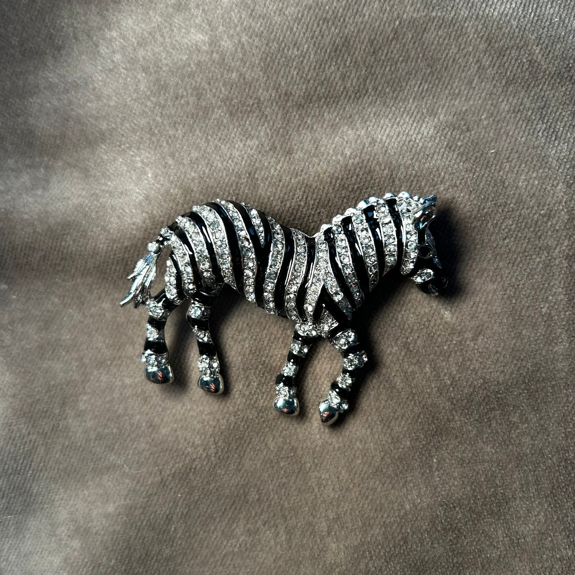 Crystal and enamel zebra brooch (5cm x 5cm)