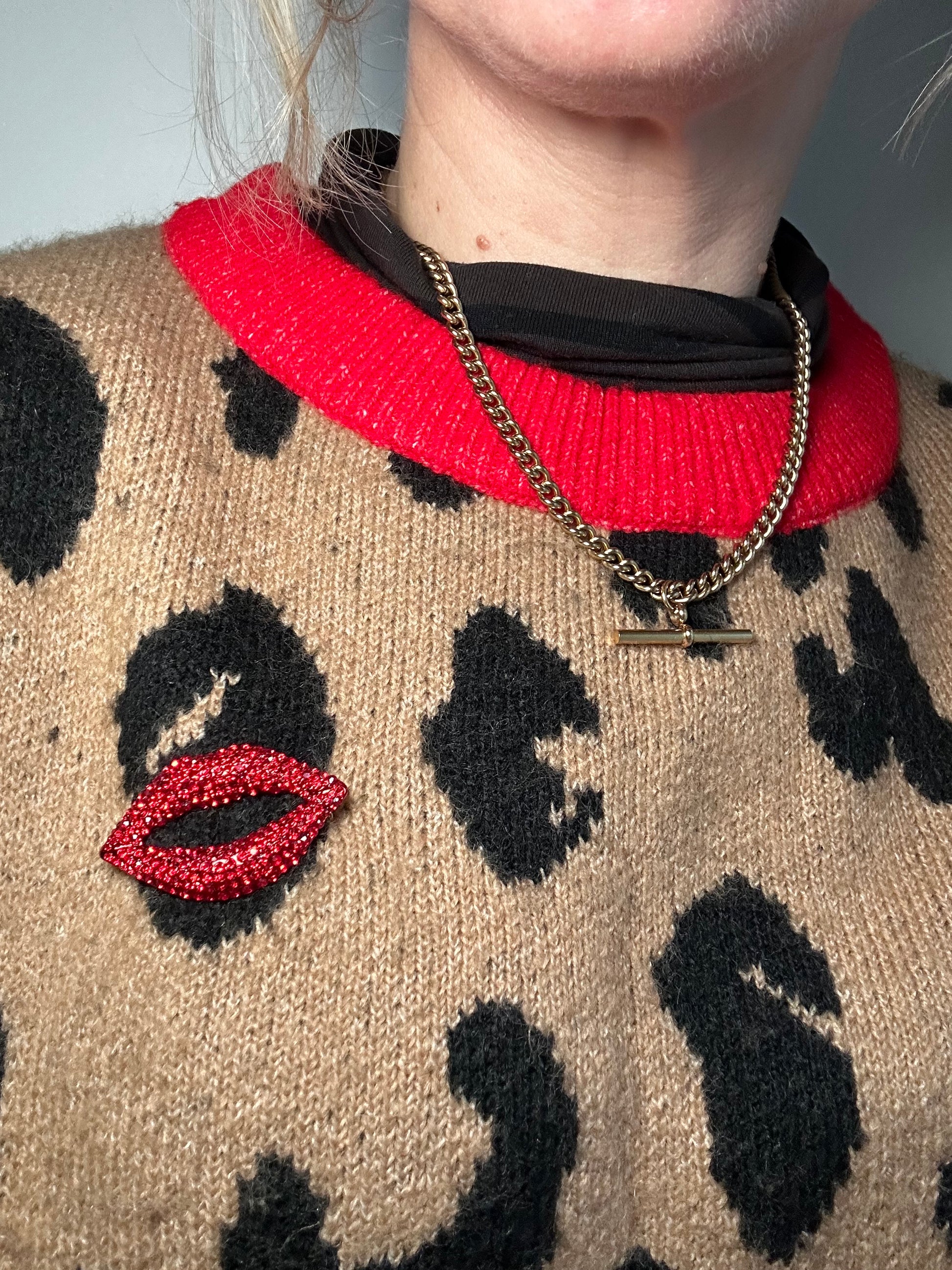Gold and Red Crystal Lips brooch (4cm x 2.5cm)