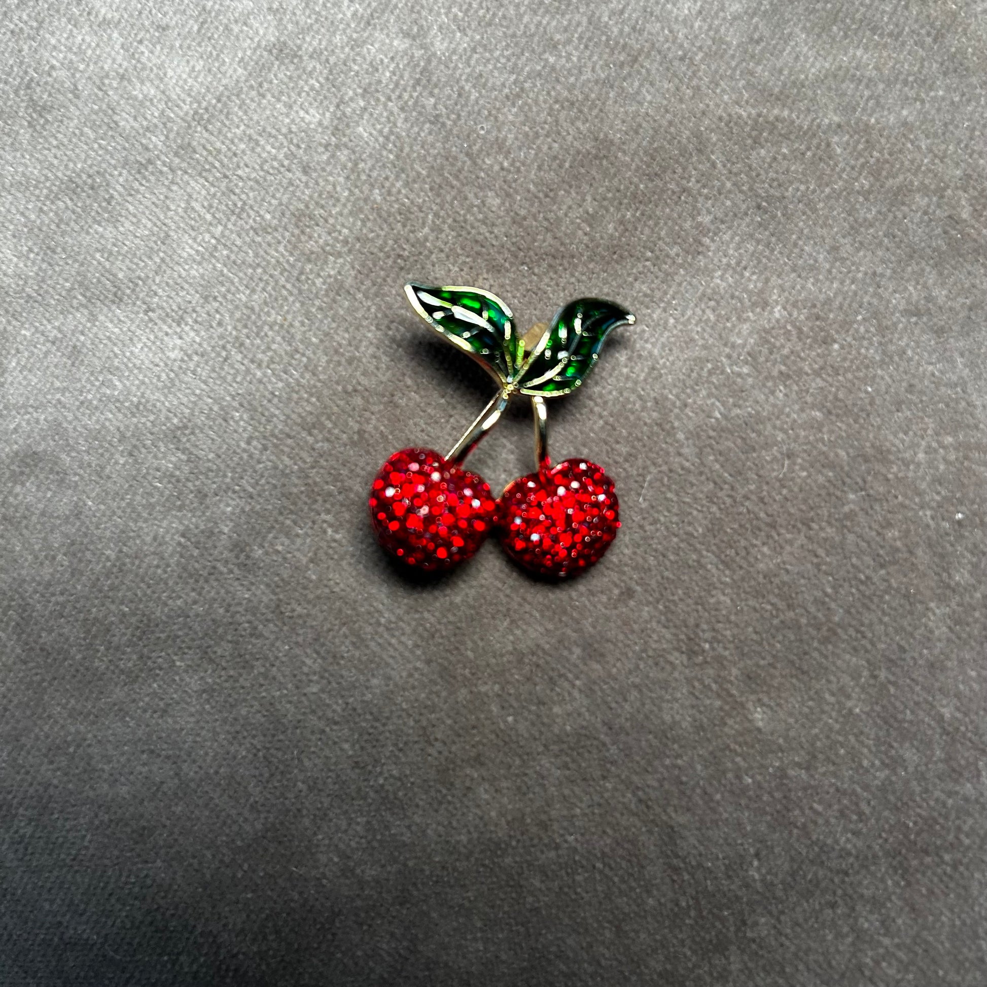Gold and Red Crystal Enamel cherry brooch (2cm x 2.5cm)