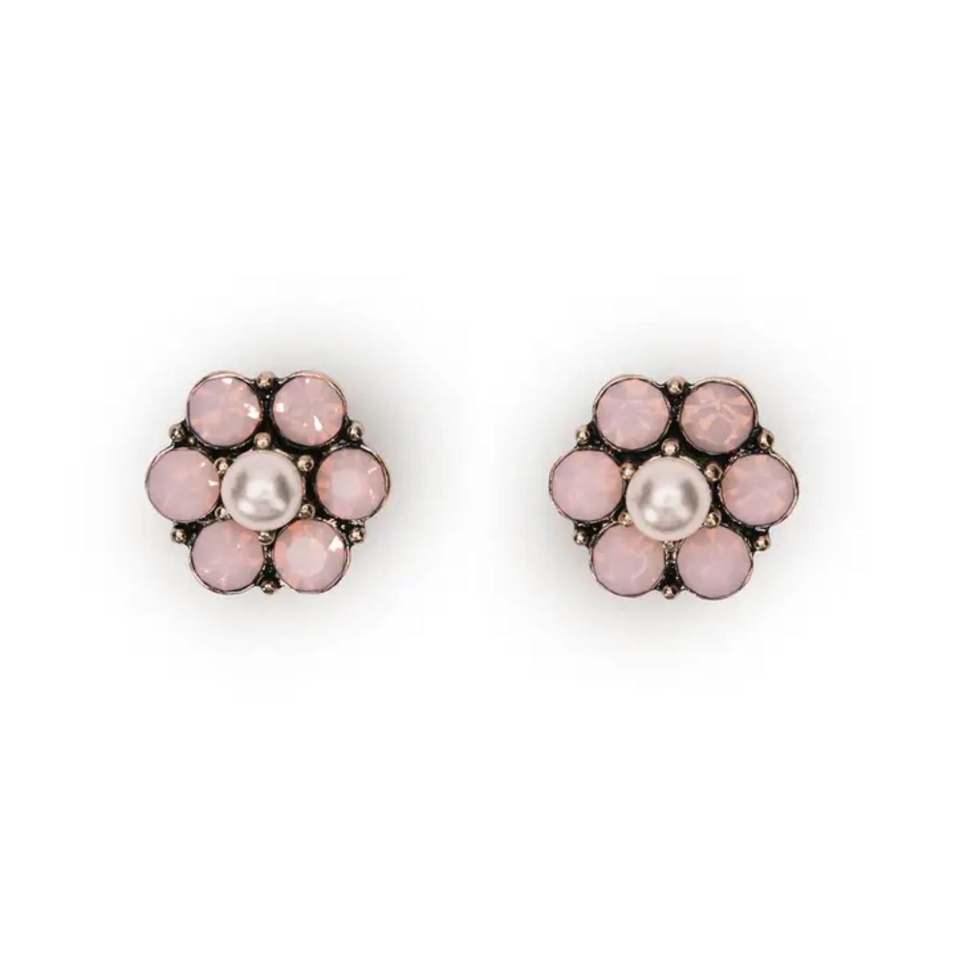 These pretty little flower studs have a vintage look about them. On a brass plate setting with pretty pink crystal petals.