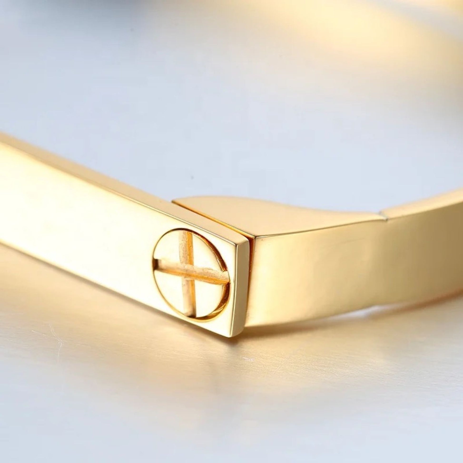These 18 carat Gold Plated D Shaped Screw Bangles look like the real deal. It is a gorgeous bangle and looks very expensive. Wear it alone or stacked up with other bracelets. It comes with a tiny screwdriver and is screwed onto the wrist.