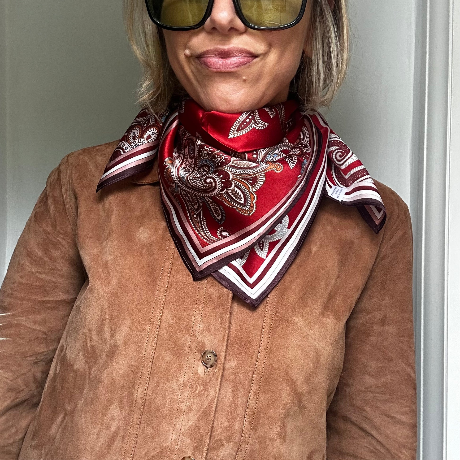 I love a silk scarf and these silk scarves are fabulous. Classic satin silk squares with a simple leopard print are an easy update to your outfit. They look great with a blazer or trench or even a t-shirt and denim. Wear as a headscarf, a hairband, around a ponytail, around your neck, your waist as a belt ... the possibilities are endless.