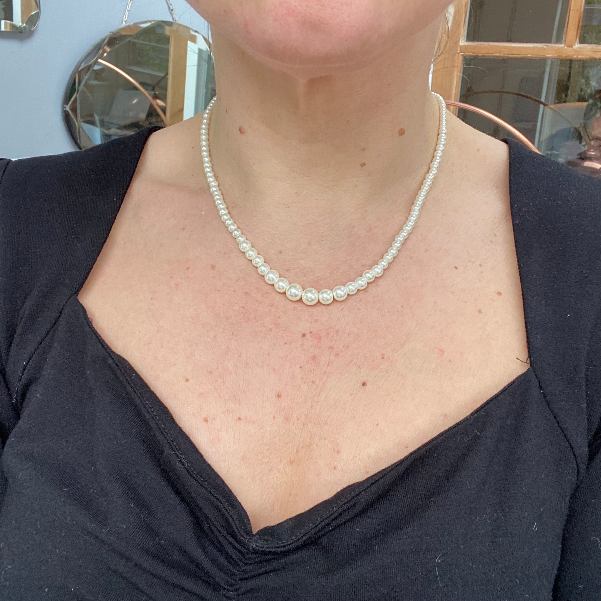 Is there anything more classic than a simple string of pearls? This is a simple yet beautiful timeless piece of jewellery. This necklace will elevate a simple outfit in seconds and make it look classy. It looks great worn with the pearl earrings and would make a fabulous gift.