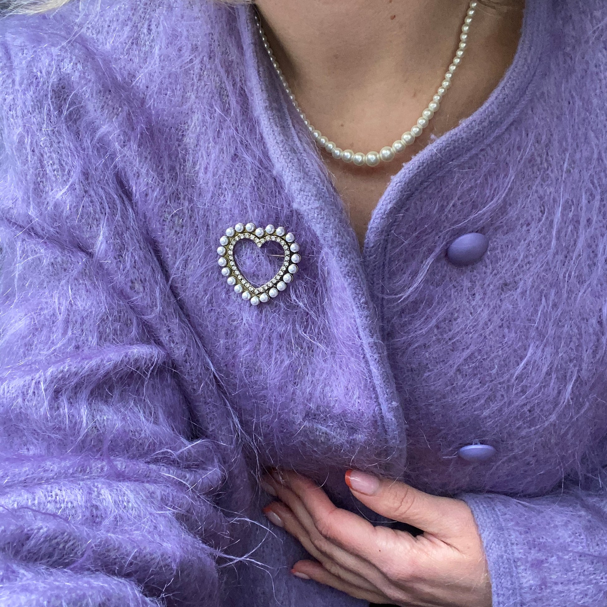This string of pearls has the most beautiful decorative crystal clasp. I love it styled with the pearl studs or heart brooch.