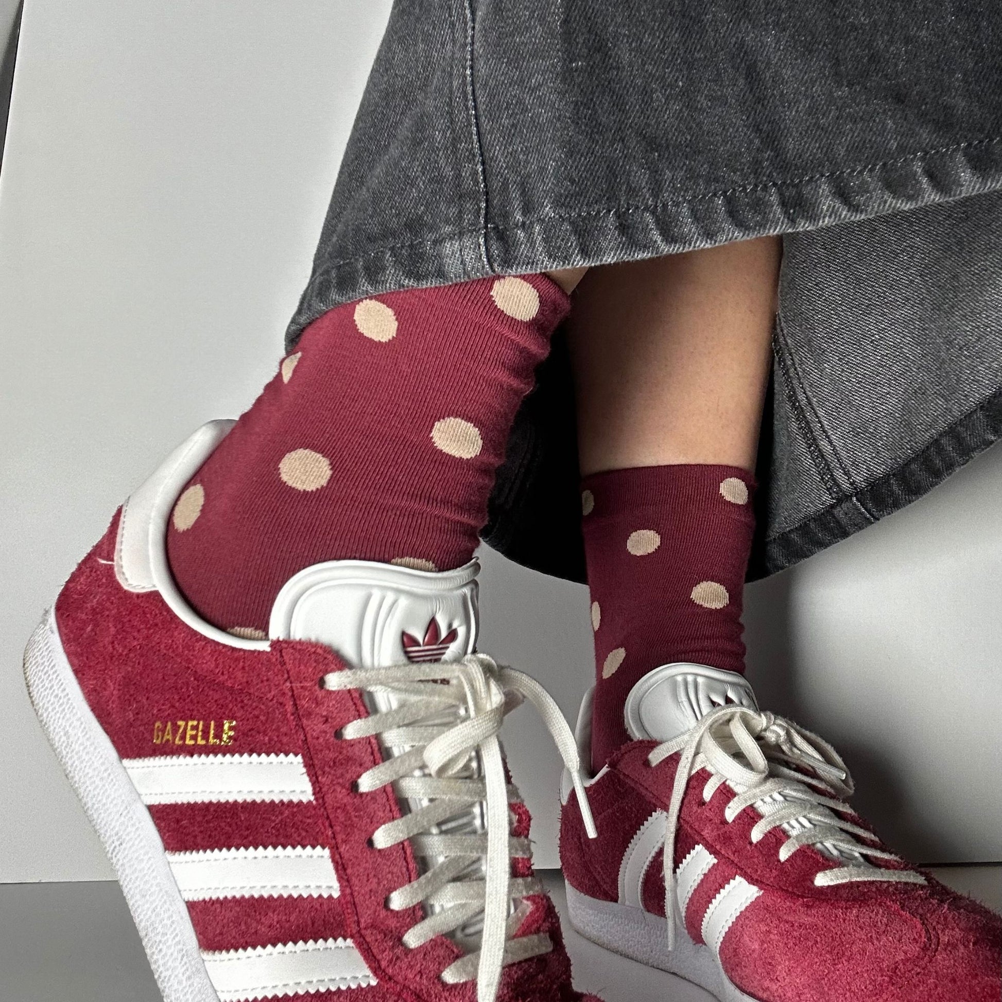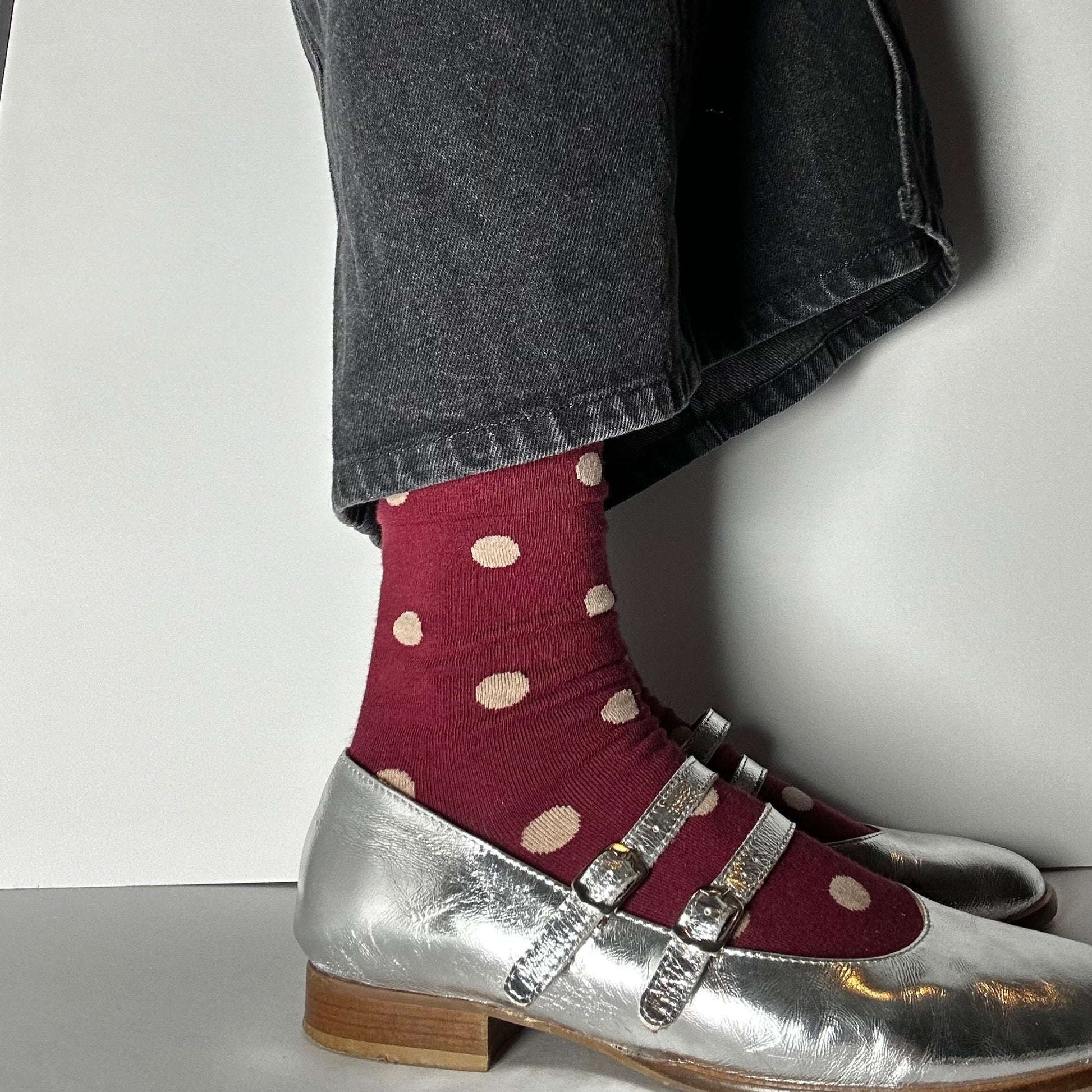 These Polka Dot socks in classic black or burgundy are absolutely fabulous and will definitely put spring in your step! They look great with everything from loafers to Mary-Janes, clogs to ballet pumps, trainers to brogues.