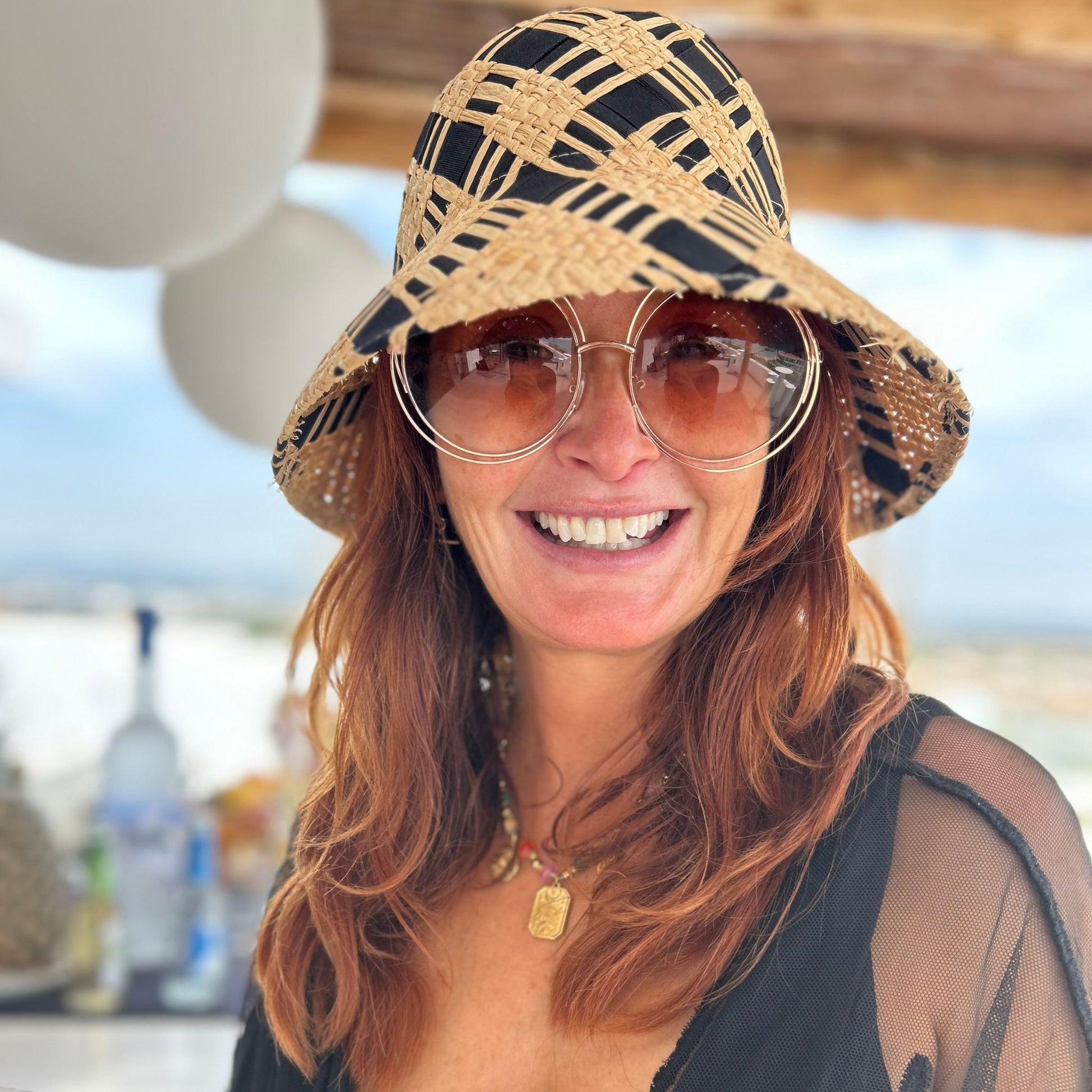 I LOVE this hat! It is absolutely gorgeous in all colours. A large bucket shape, woven raffia with black, white/beige or coffee ribbon. It can be flat-packed which means you can easily take it on holiday without having to wear it en route! It looks fab whether you are wearing shorts a tank top or a floaty dress.