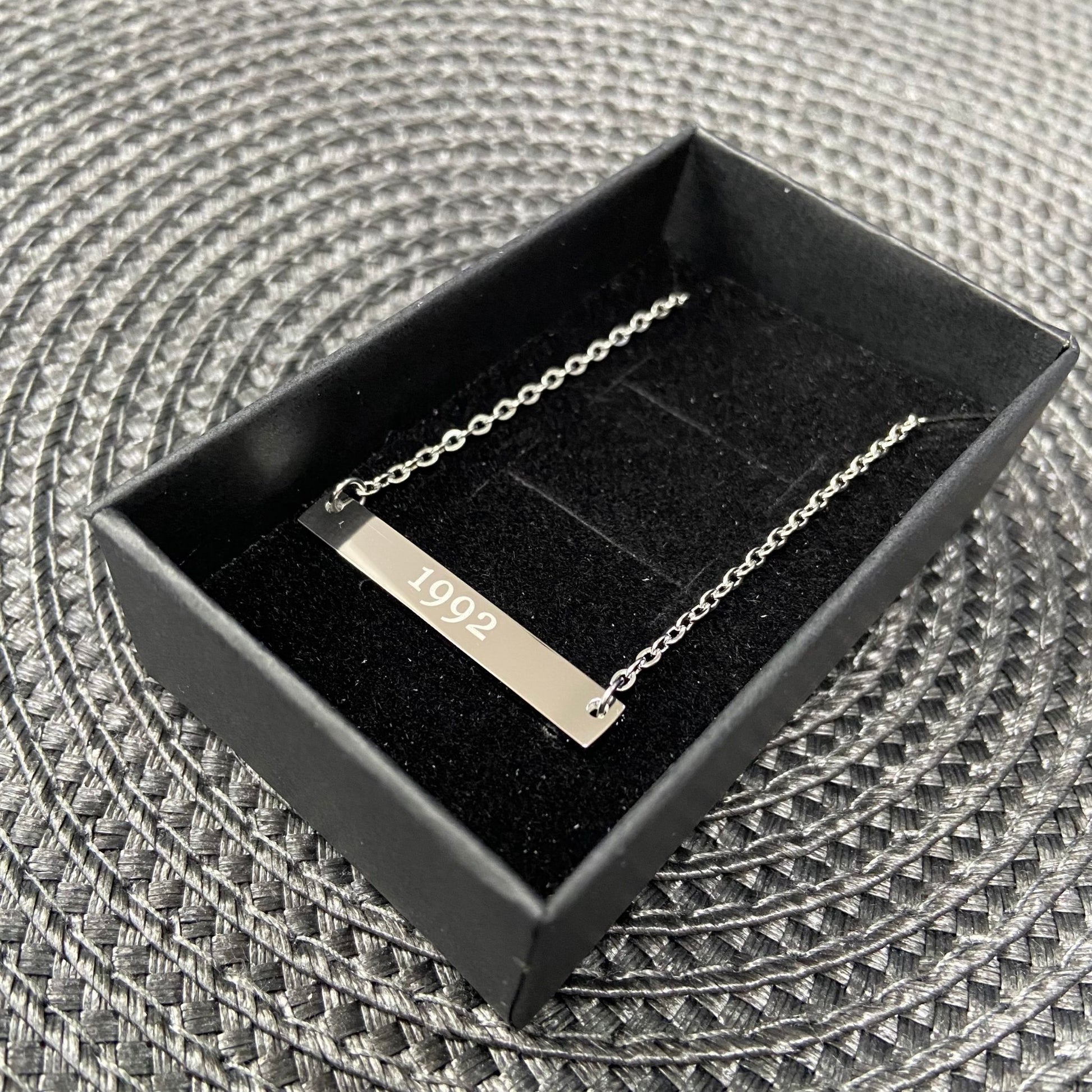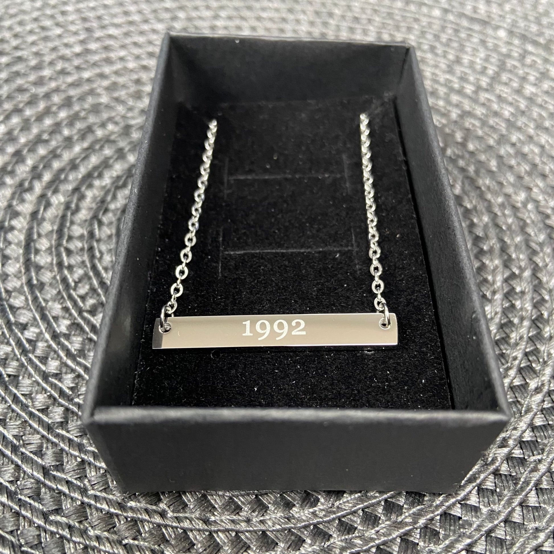 This Silver Plated Rectangular Bar is a simple classic. Wear it alone or layered with another necklace. Available as a plain bar or engraved with 1972, 1982 or 1992. Perfect gifts for those celebrating 30th, 40th and 50th birthdays this year. Also available in Gold.