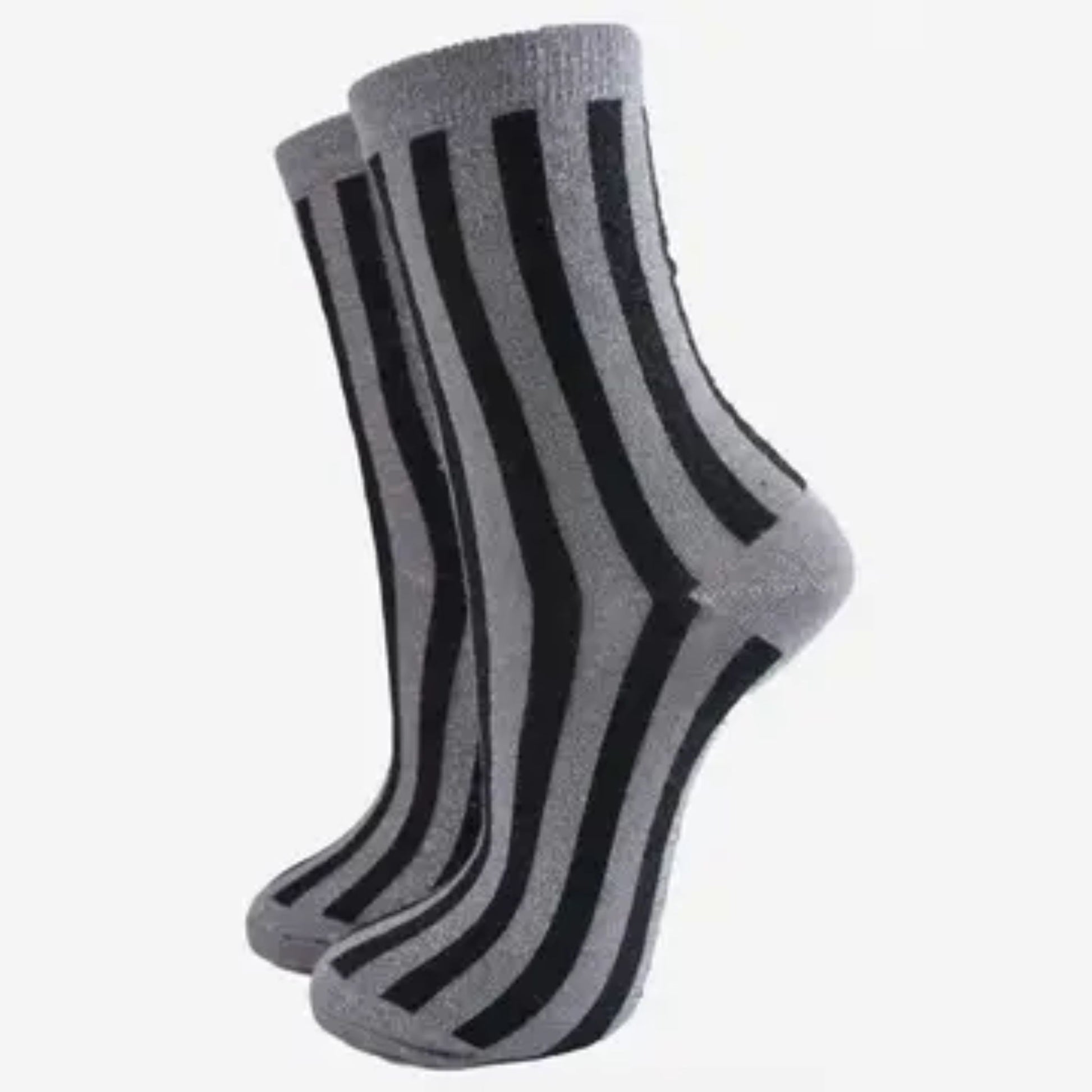 These Striped Sparkly socks are fantastic. These are super comfy, so practical as well as stylish. In Gold or Silver.