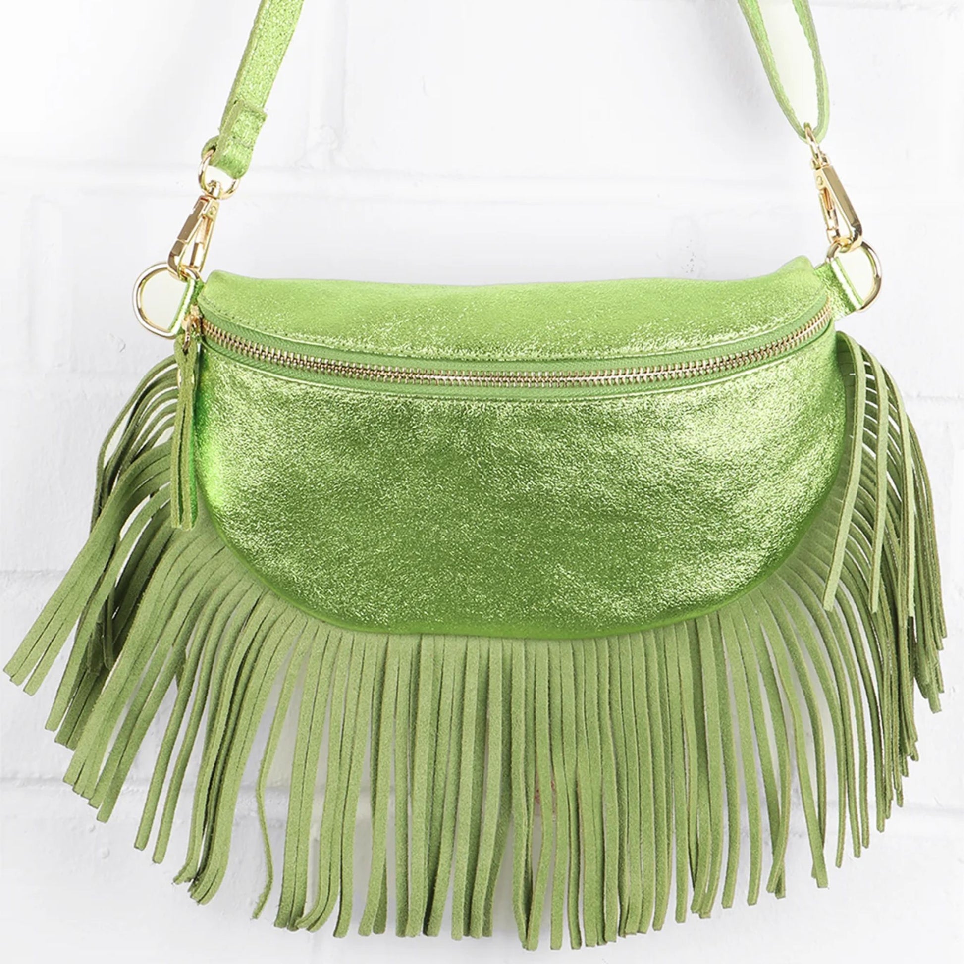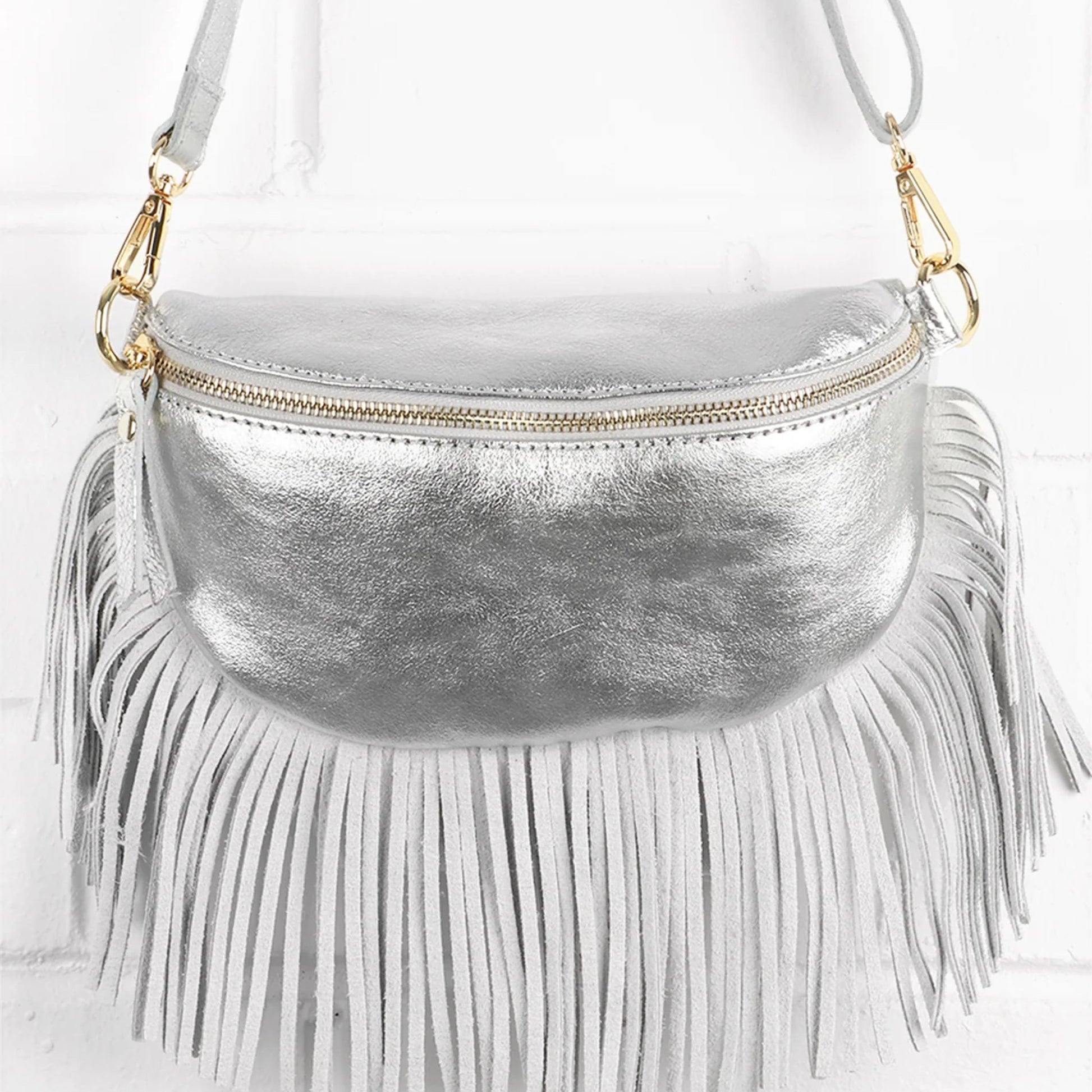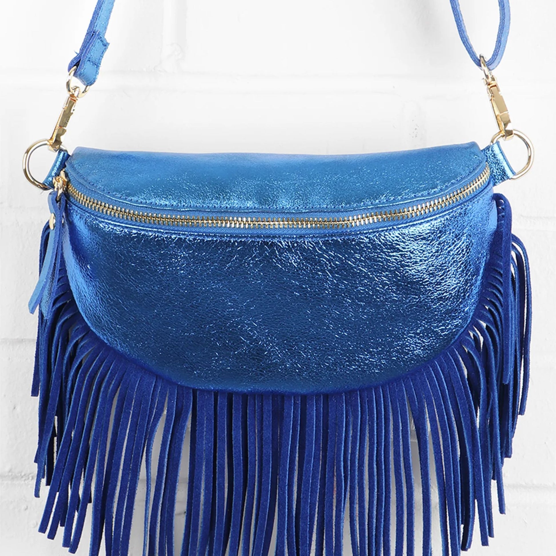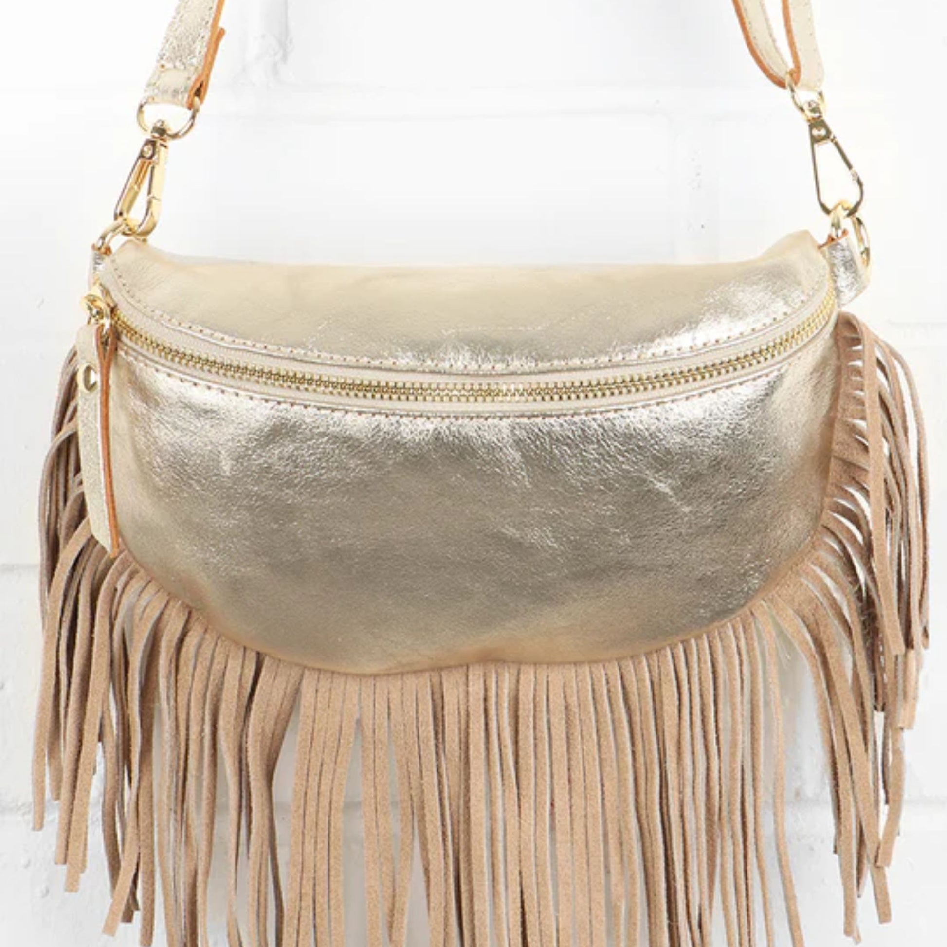 Meet your new Summer bag, the fringed leather 'bumbag' is the perfect cross-body holiday , festival bag or going out bag! Our leather crossbody Bumbags can be dressed up or down. The leather bumbag is your perfect holiday bag, school run bag dog walk bag, shopping bag, travel bag … everything bag! As with all of our bags, these bumbags are beautiful quality, 100% Italian leather and is lined, features an internal zipped pocket and gold hardware. Protective dustbag with every bumbag.