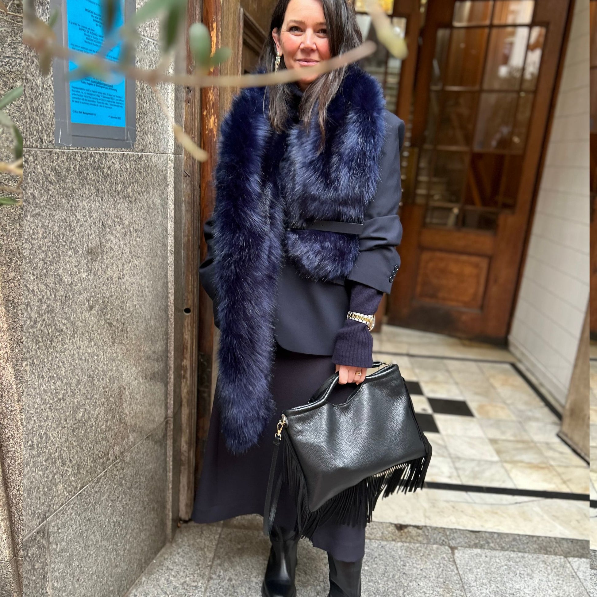 I love fringed bags and this edgy little number is a beauty. The medium-sized Leather Fringed Bag comes in pebbled leather with suede tassels. Hold using the handle or use the cross body extendable strap, it is the perfect day to night bag and ideal for weekends away and holidays. It is beautiful quality. Surprisingly roomy without looking or feeling big. I love how it adds interest to an outfit.