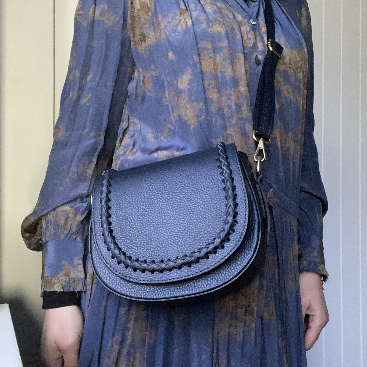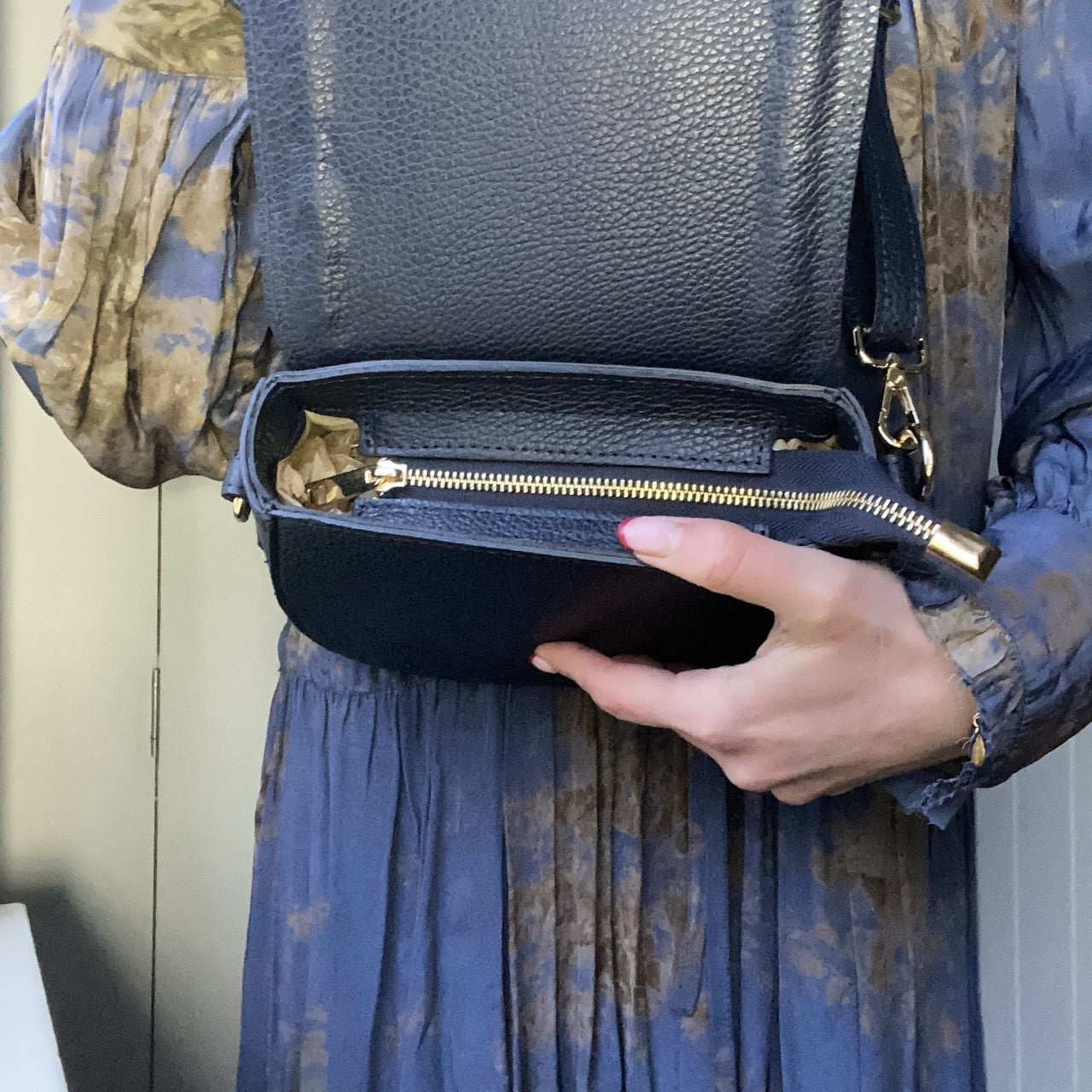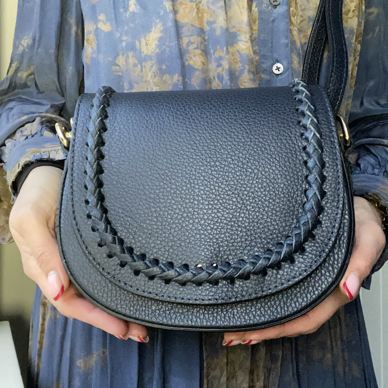 The Leather Saddle Bag is a beautiful handbag, a classic structured style, in timeless navy. It is of beautiful quality, handmade, 100% Italian leather, with a cross-body strap.