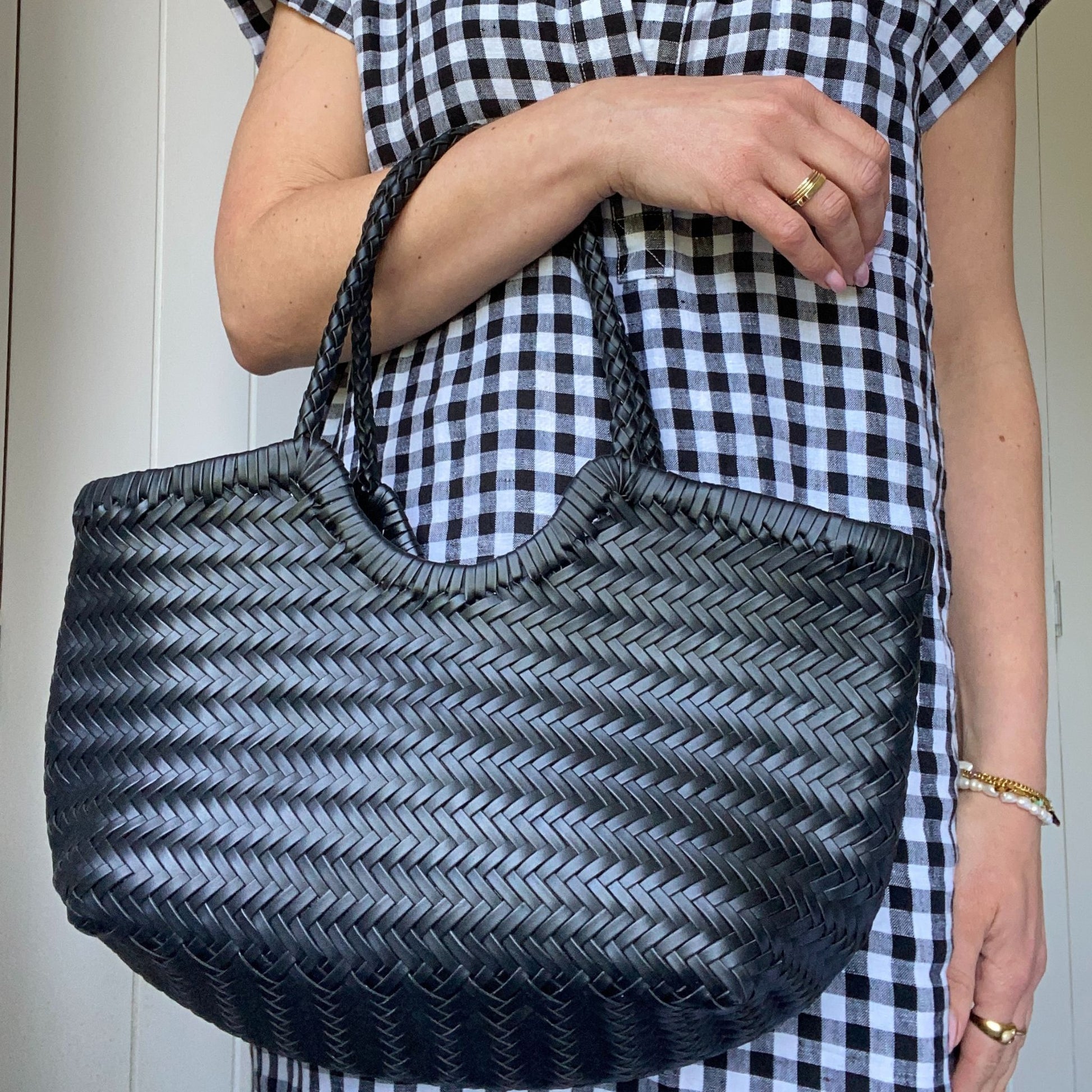 IMPORTANT - Whilst woven leather baskets are durable, they are not designed to carry heavy loads. Excessive weight can deform the bag's shape and potentially cause damage, such as leather strips coming loose. It's recommended to avoid overloading the bags, especially with items like laptops, books or groceries.