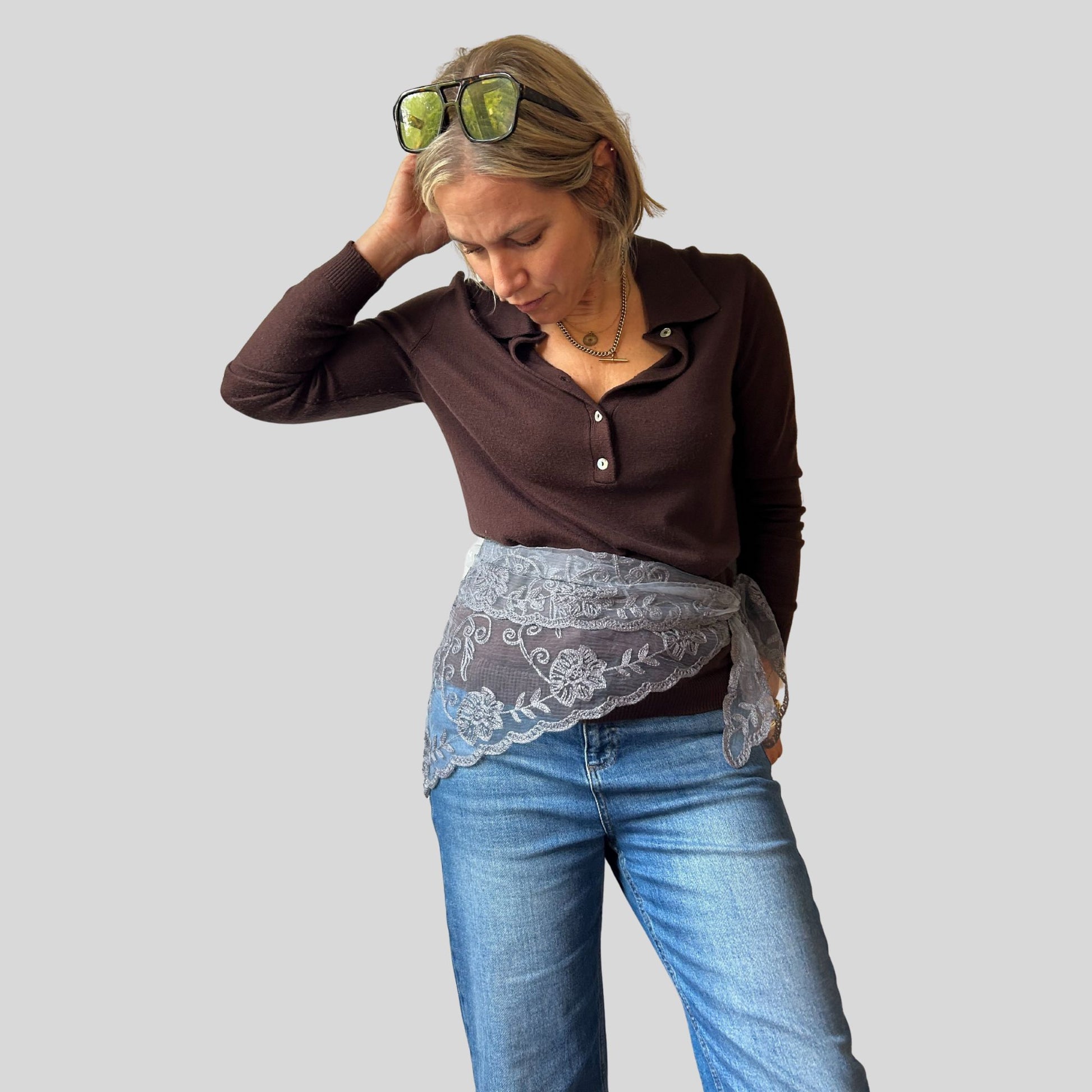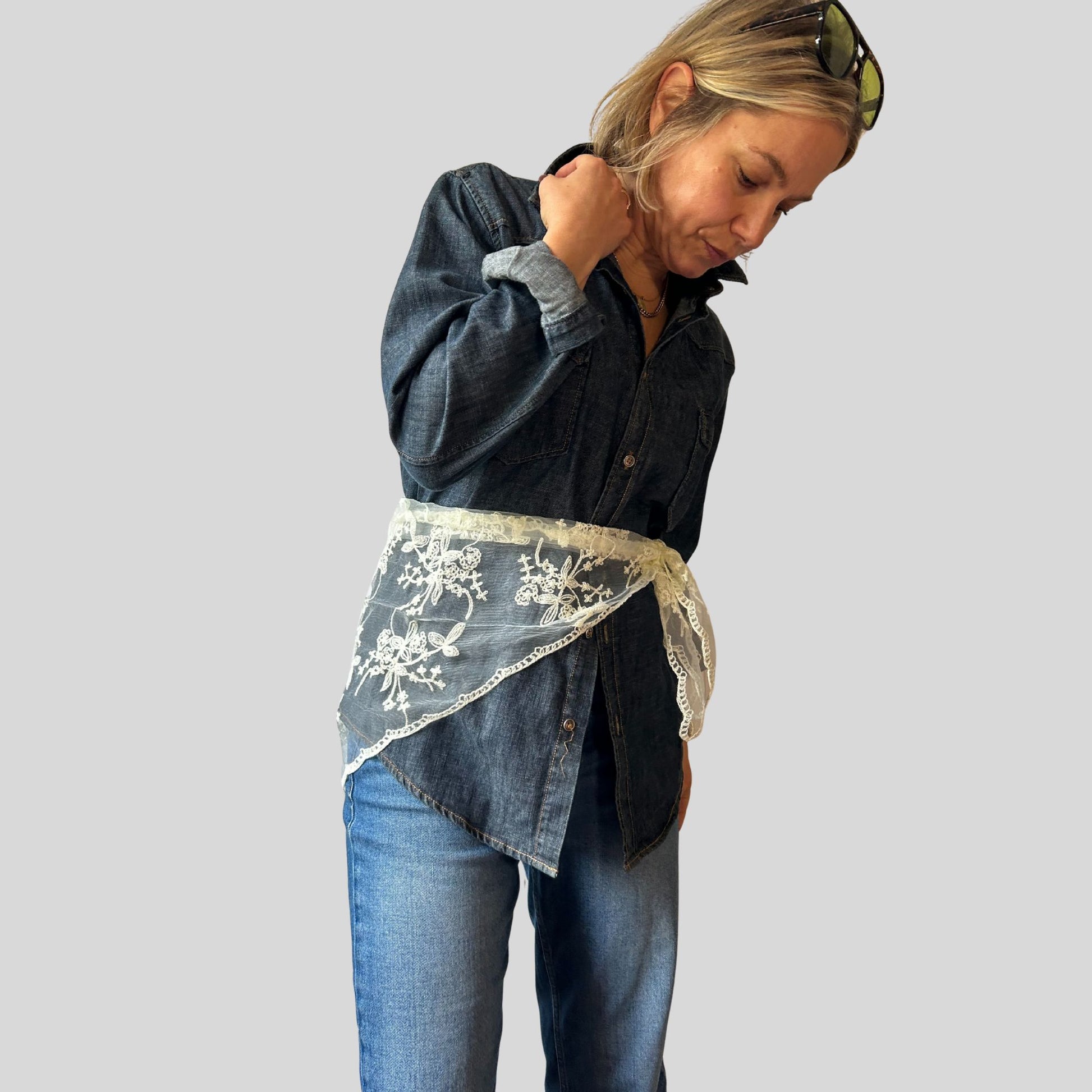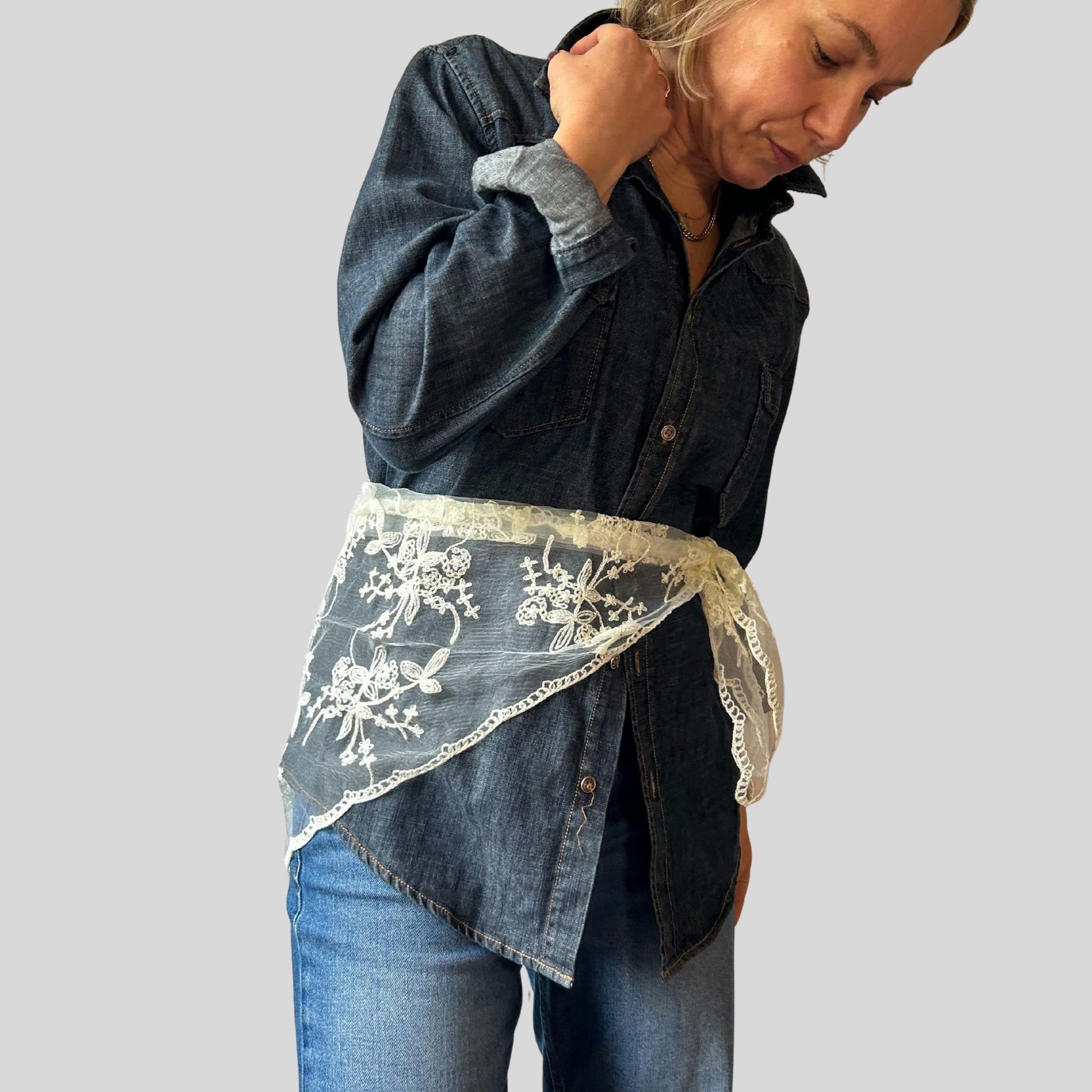 I love these Triangular lace scarves. They are so versatile, for adding a touch of on trend lace to your outfit. Wear as a pretty scarf round your neck as a lace neckerchief, as a lace headscarf, around your waist , under a knit or blazer revealing a touch of lace or over the top as a statement belt.